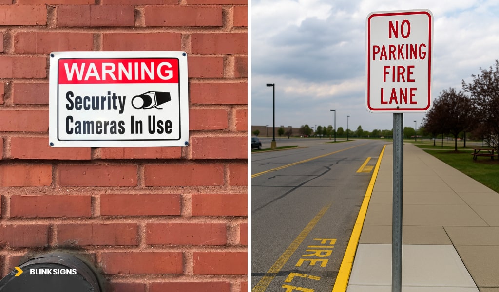 • Fire Lane & Emergency Exit Signs: Ensure safety and compliance with fire codes.